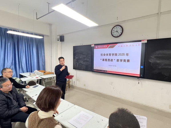 为深入贯彻落实“立德树人”根本任务,全面推进“课程思政”教学改革,提升全体教师的课程思政教学能力,11月26日下午,社会体育学院成功举办了2025年“课程思政”教学竞赛。学院全体教师齐聚一堂,以饱满的热情参与了此次教学竞赛。