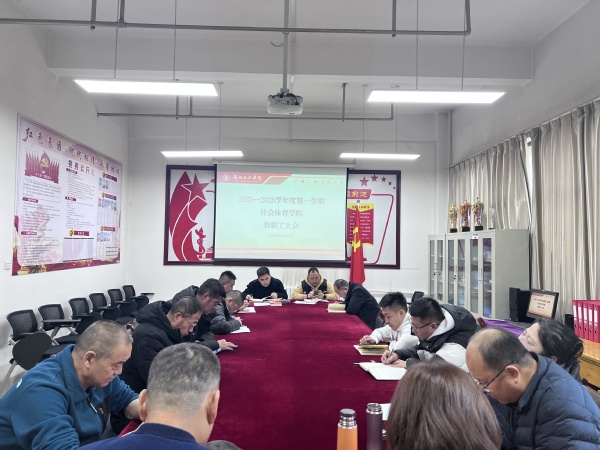 2026年1月5日,为统筹推进期末各项重点工作与年度总结工作,社会体育学院召开2025年度教职工述职大会及处级领导班子和处级领导干部考核评议大会。会议由党总支书记刘永睿主持,院长陆克珠、副院长王奎及全体教职工参会。