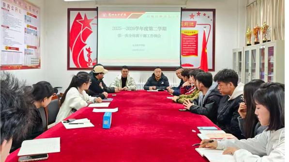 2026年3月1日上午,社会体育学院在强能楼2-217会议室组织召开了2025-2026学年第二学期第一次全体班干部工作例会。会议传达了学校最新学生工作要求,并对新学期学生管理、服务及就业指导等任务进行了全面部署。学院学工办主任、辅导员及全体班干部参加了本次会议。