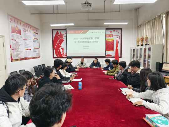 为进一步畅通教学信息反馈渠道,提升教学信息员队伍工作能力,充分发挥信息员在教学管理中的桥梁纽带作用,3月2日,社会体育学院在学院会议室召开2025-2026学年第二学期第一次全体教学信息员工作例会。学院辅导员及各班级教学信息员参加会议。